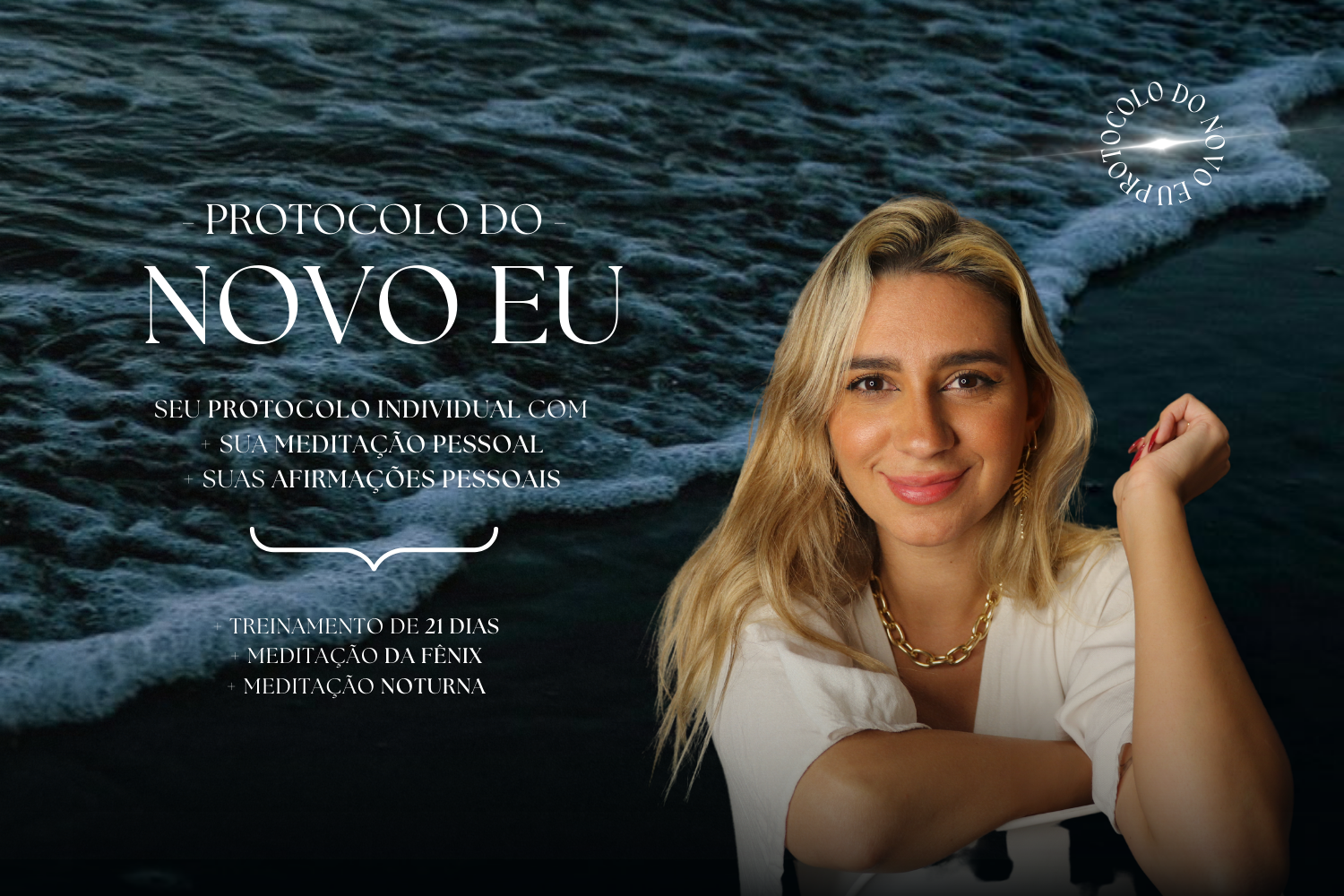 O Protocolo do Novo Eu tem um grande diferencial de tudo o que você já viu por aí: eu crio para você, a partir de um formulário super profundo, a sua meditação pessoal, suas afirmações pessoais, além de um PDF com 20 páginas de tudo o que você deve agradecer, lembrar e fazer diariamente.